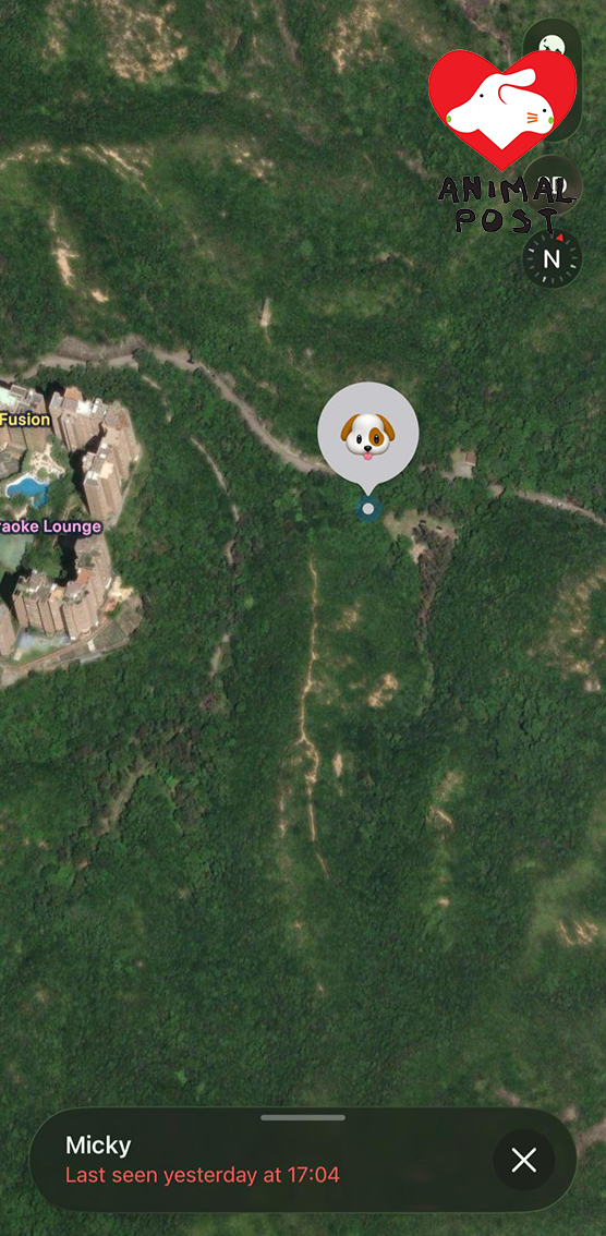 【動物專訊】約3個月大的狗女「Micky」剛獲領養,沒想到領養人翌日即帶她到大潭郊野公園2號燒烤場遊玩,結果不小心讓狗狗走失。多名義工得知後已經趕到現場展開搜救,AirTag亦顯示狗狗身在燒烤場附近的叢林中,惟至今未能找到狗狗的身影,讓一班義工十分擔心,當日安排領養的愛護動物協會,亦有職員到場協助尋狗。